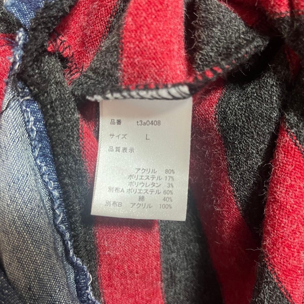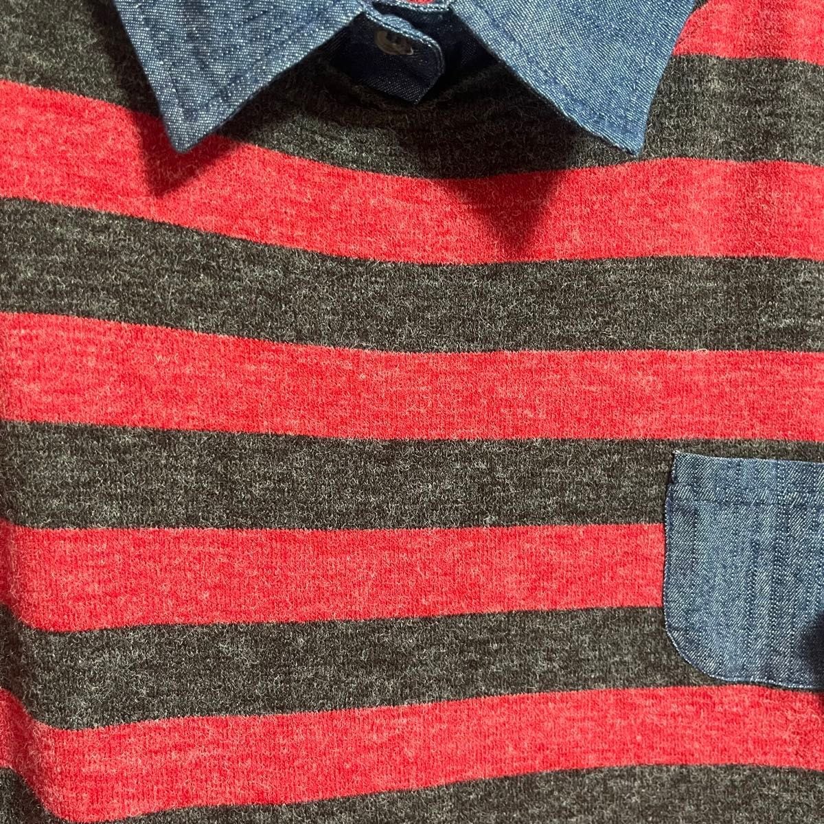 【状態A】【美品】 soulberry 赤 黒 ボーダー柄 チュニック L デニムシャツ