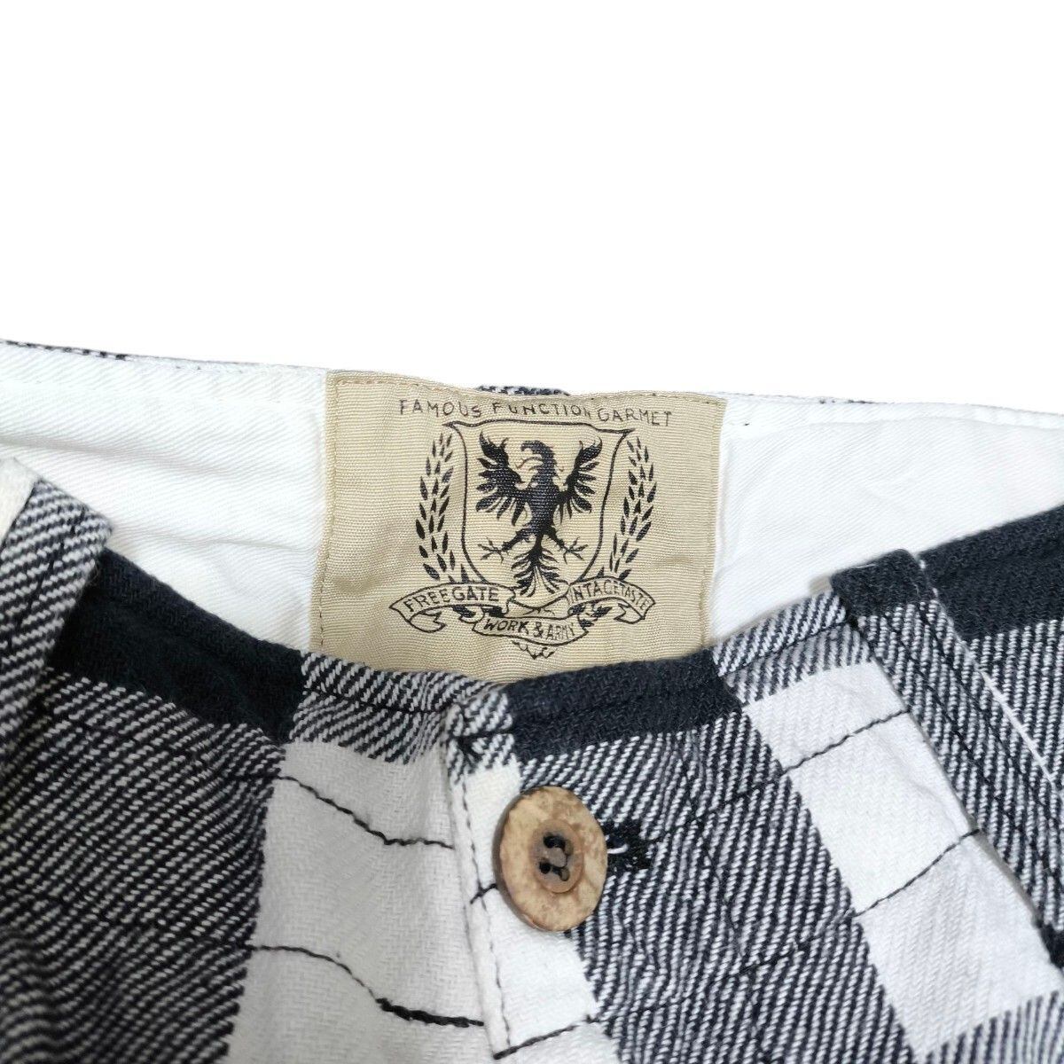 Famous function garmet のギンガムチェック柄のMサイズショートパンツ、ウエスト78cmで快適な着用感。