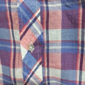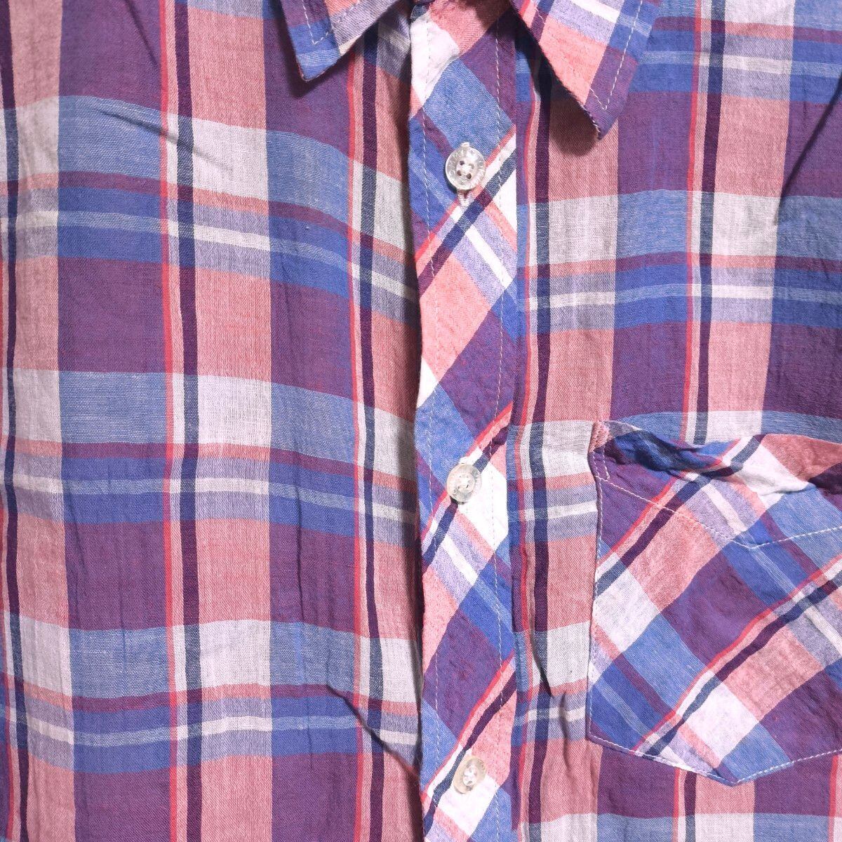 チェック柄の半袖シャツ、Mサイズ、New York Cityの文字のバックプリント。