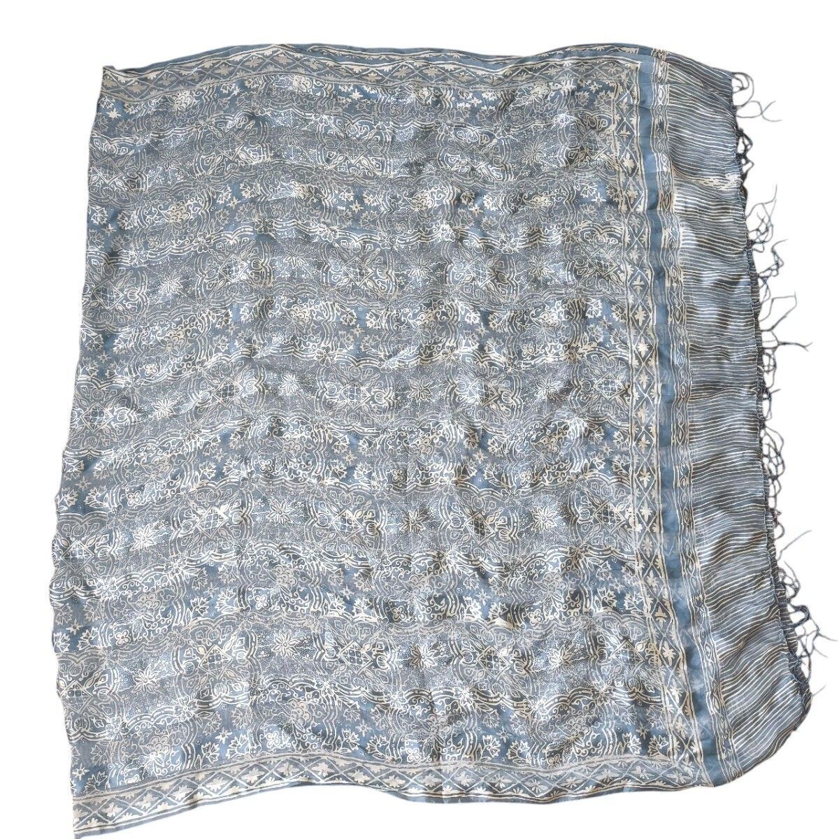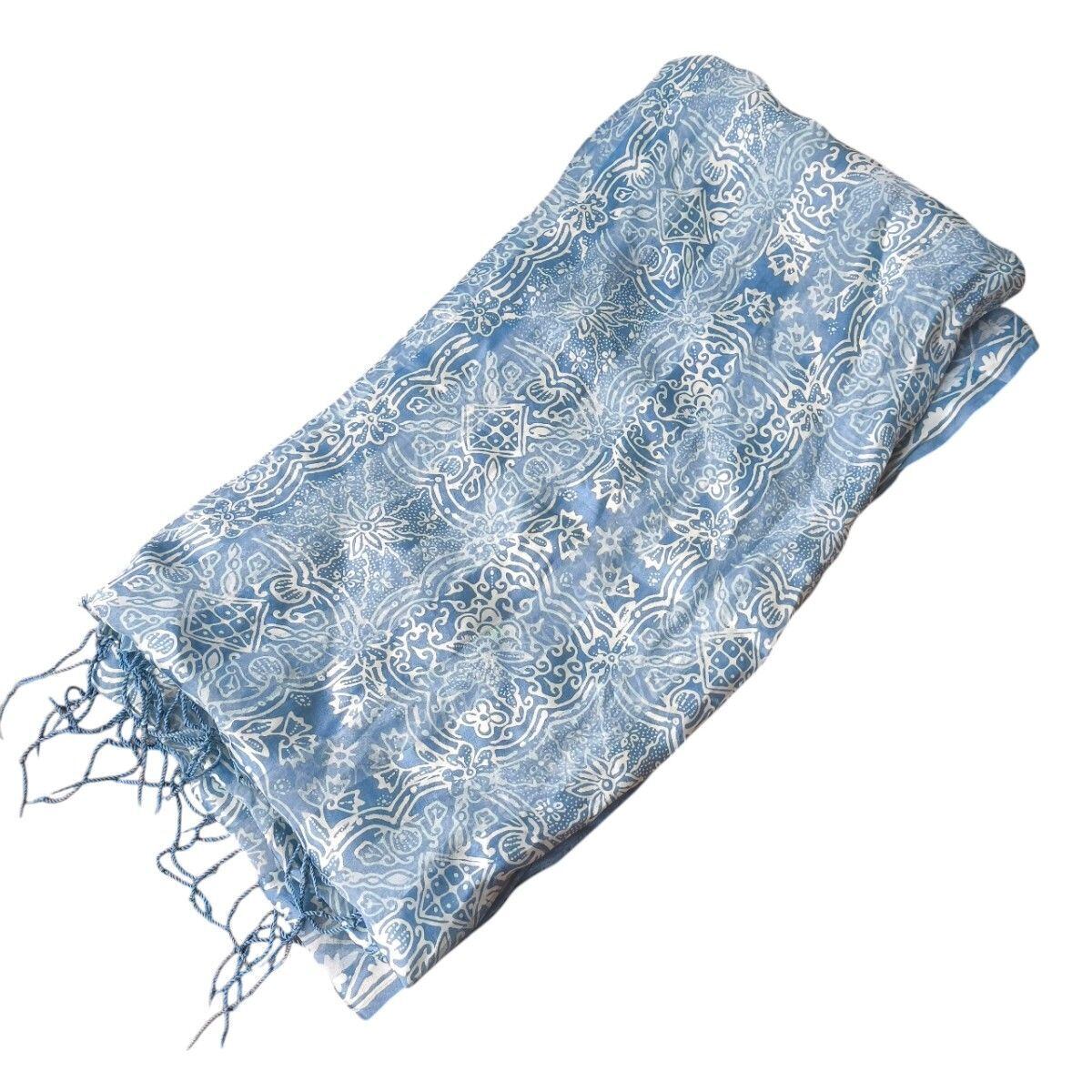 【状態A】青系模様 総柄 ストール 大判 160cm x 85cm
