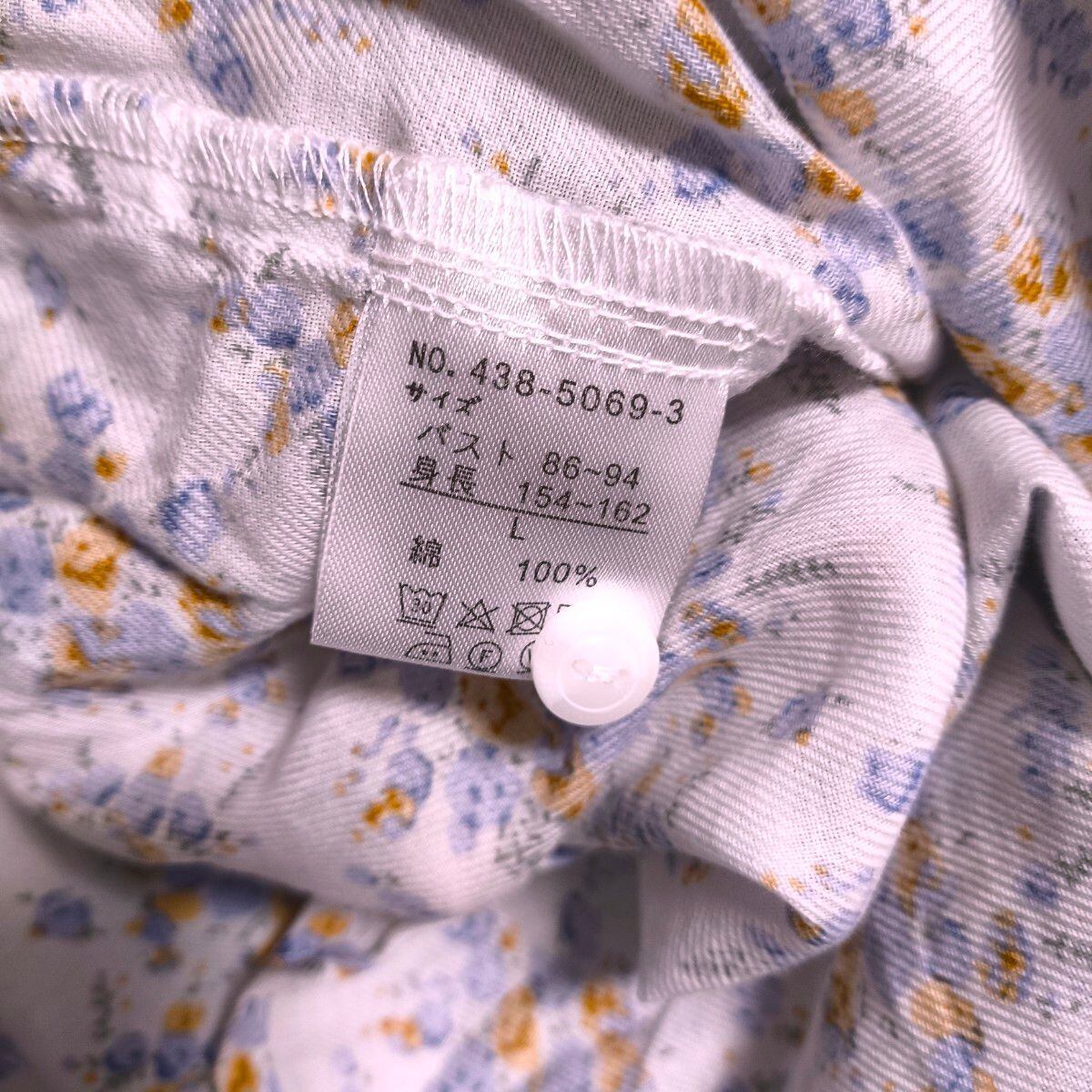 【状態A】【美品】 花柄 ボタニカル 七分袖スキッパーシャツ Lサイズ
